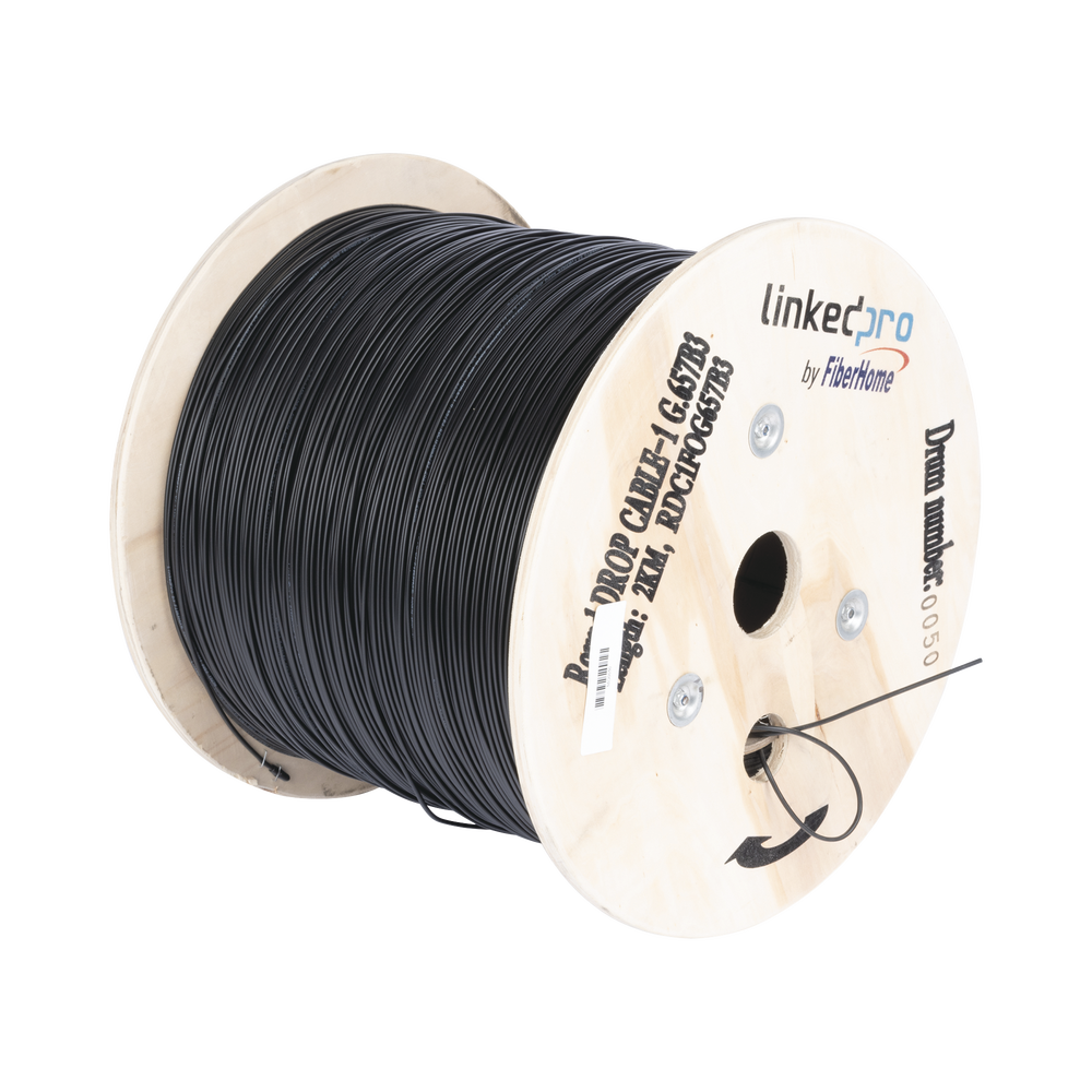El cable de fibra óptica tipo Drop Figura 0, es ideal para llegar de manera aérea desde el NAP a edificios, casas, oficinas, etc. en aplicaciones FTTx. Es totalmente dieléctrico.